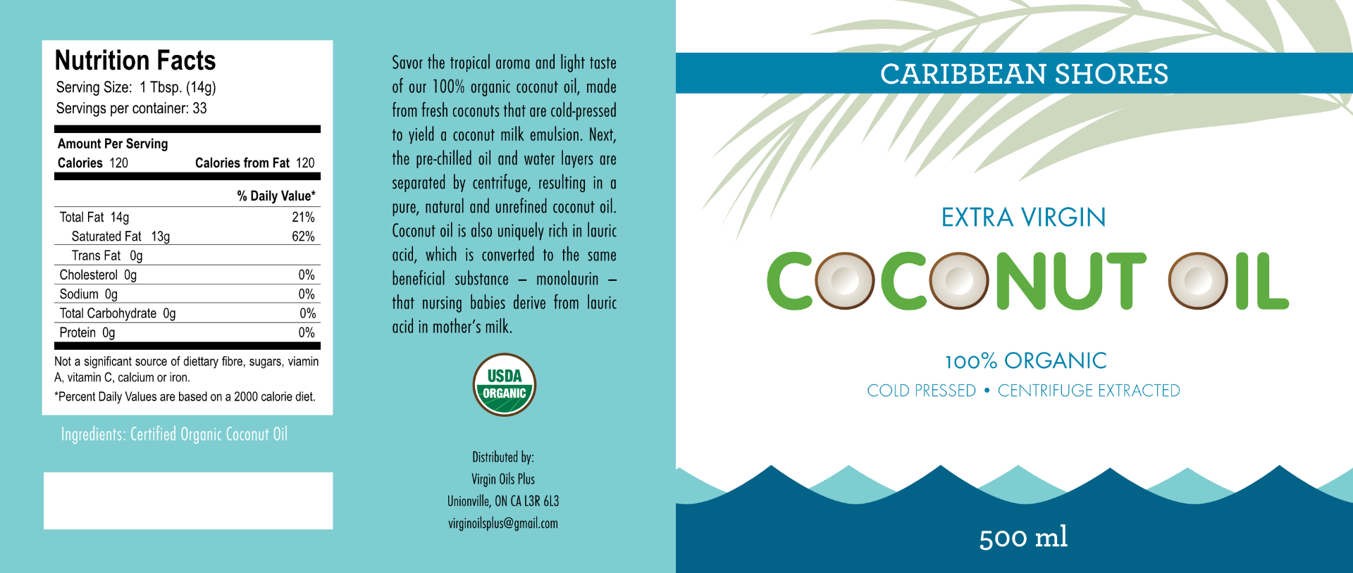 A label design for organic cold pressed coconut oil.